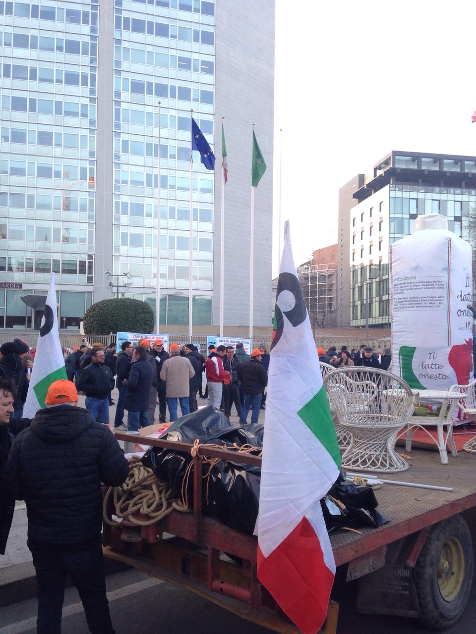 “Dopo un mattinata di presidio all’Idroscalo, la manifestazione si è spostata con un gruppo di trattori in centro a Milano in Piazza Duca d’Aosta, di fronte a Palazzo Pirelli, sede storica di Regione Lombardia, dove, vista la grave crisi e le risposte non ancora giunte, verrà istituito un presidio permanente.