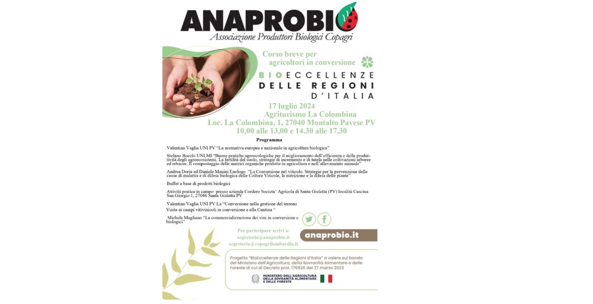 Corso breve per Agricoltori in conversione20 Giugno 2024 in Eventi Copagri Mercoledì 17 luglio 2024 dalle ore 10 alle 13 Lezione teorica presso Agriturismo la Colombina a Montalto Pavese (PV) Mercoledì 17 Luglio 2024 dalle 14:30 alle 17:30 Lezione pratica presso Cordero soc. Agr. a Santa Giulietta (PV)